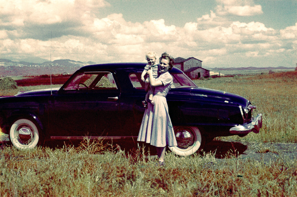 Soon afterwards, however, he bought a nice Italian sports car. Again, to share his joy with not only his American wife but now also with his mother, he them both out driving around the Roman countryside. To his great surprise, while speeding, a crossing where the bridge had not rebuilt yet suddenly loomed ahead. Too late to stop, Dad decisively determined to continue full speed ahead and so he actually flew over the river to the other side landing with great force on all four wheels bending them outward. It became impossible to drive any further.