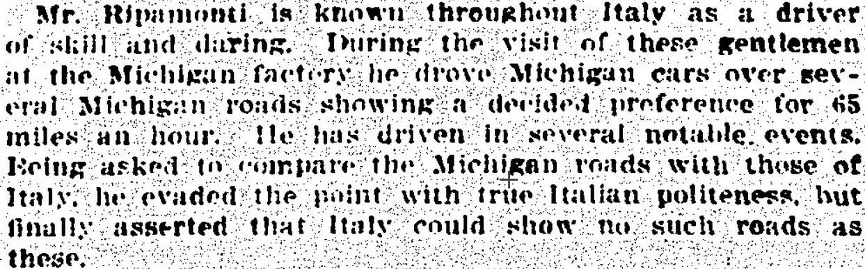 Below is an excerpt from one of several articles written about my grandfather in 1913 after he had visited the Michigan Motor Car Company: